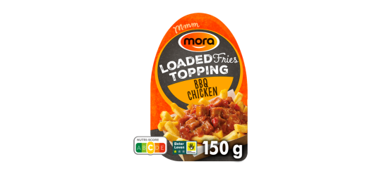 Onze Loaded Topping BBQ Chicken is een smaakvolle topping van BBQ saus, malse stukjes Beter Leven kippenvlees, stukjes tomaat, paprika en ui.